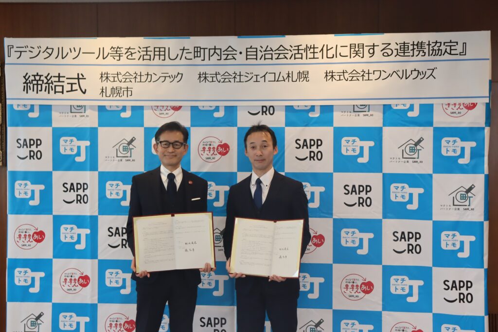 札幌市と「デジタルツールを活用した町内会・自治会活性化に関する連携協定」を締結いたしました。 2026/03/04 2026年3月3日(火)14時から、札幌市役所10階市長会議室で開催されました「デジタルツール等を活用した町内会・自治会活性化に関する連携協定締結式」において、弊社は標記の協定を締結いたしました。 町内会のデジタル化支援について、弊社が札幌市官民連携窓口を通じて提案し、札幌市さまとの合意にいたり連携協定の締結に至ったものです。今後は町内会活動の担い手確保や役員の負担軽減を図る「デジタル化」への一歩を後押しする活動を、札幌市さまと協働で取り組んでまいります。